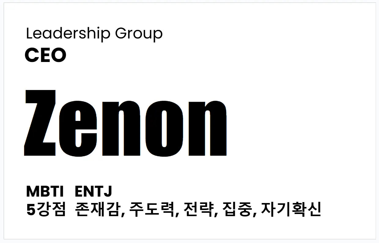 각 자리마다 놓인 구성원 네임택에 기재된 MBTI&강점 리스트